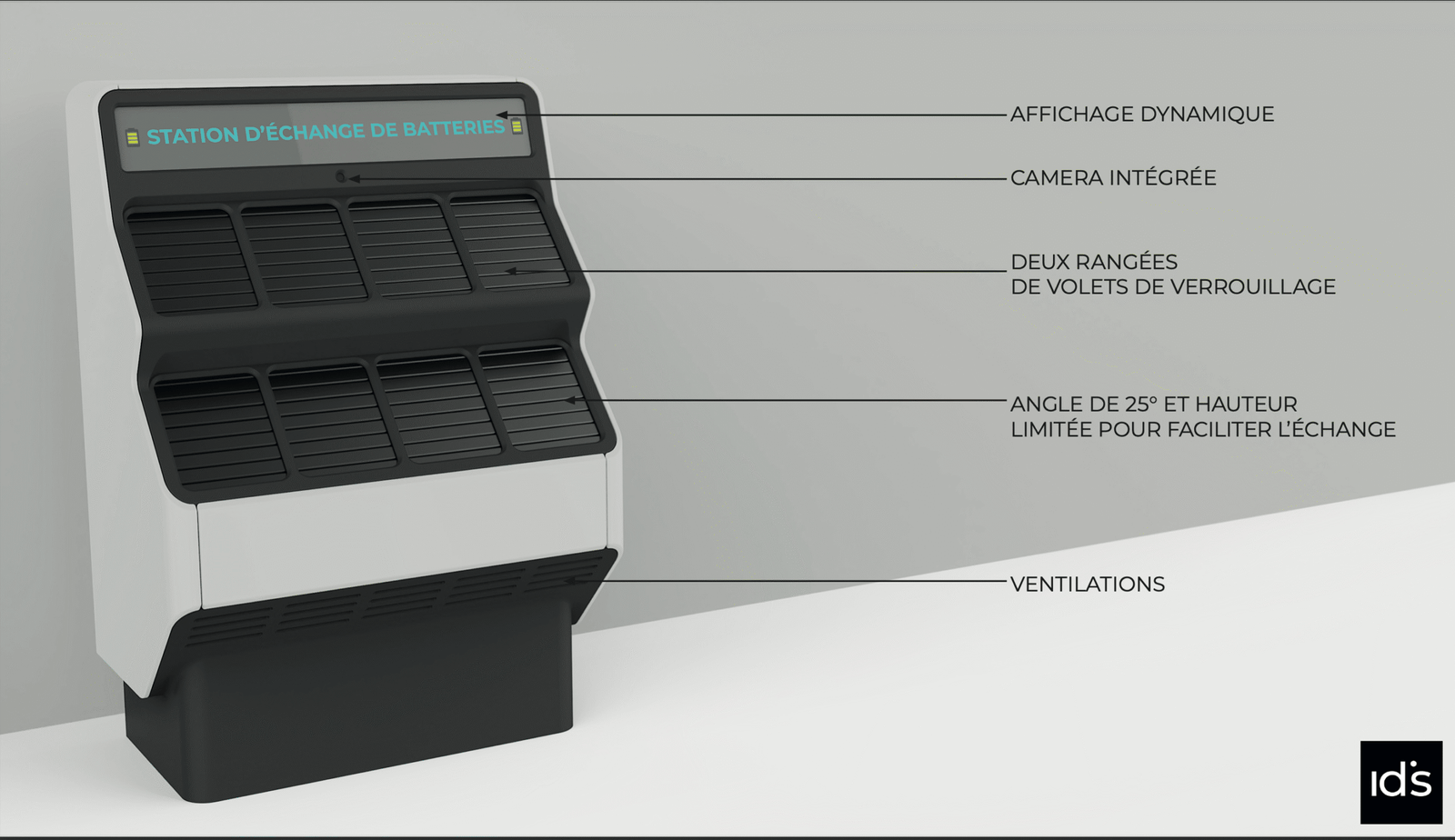 ISE Mobility propose des bornes d’échange universelles capables d’alimenter n’importe quel deux-roues électrique à batterie amovible.